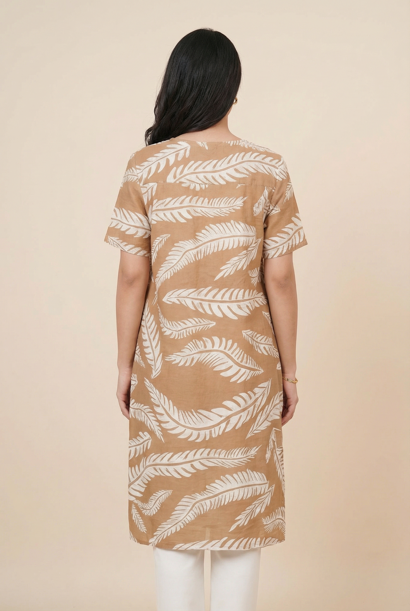 Fern-Print Modest Tunic Dress(4 Color Options)
