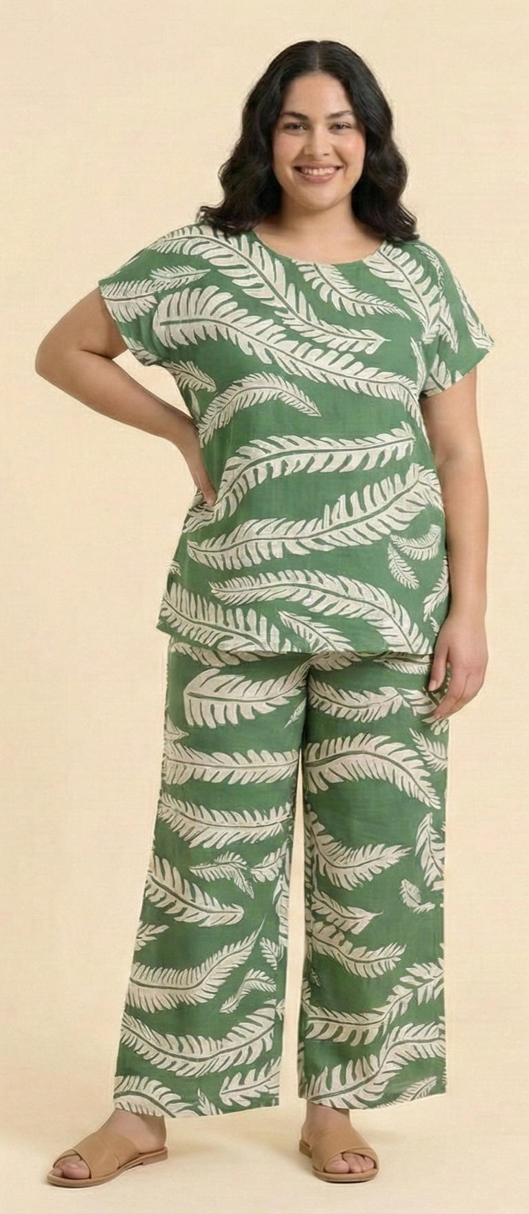 Tropical Fern-Pattern Modest Loungewear Set (4 Color Options)
