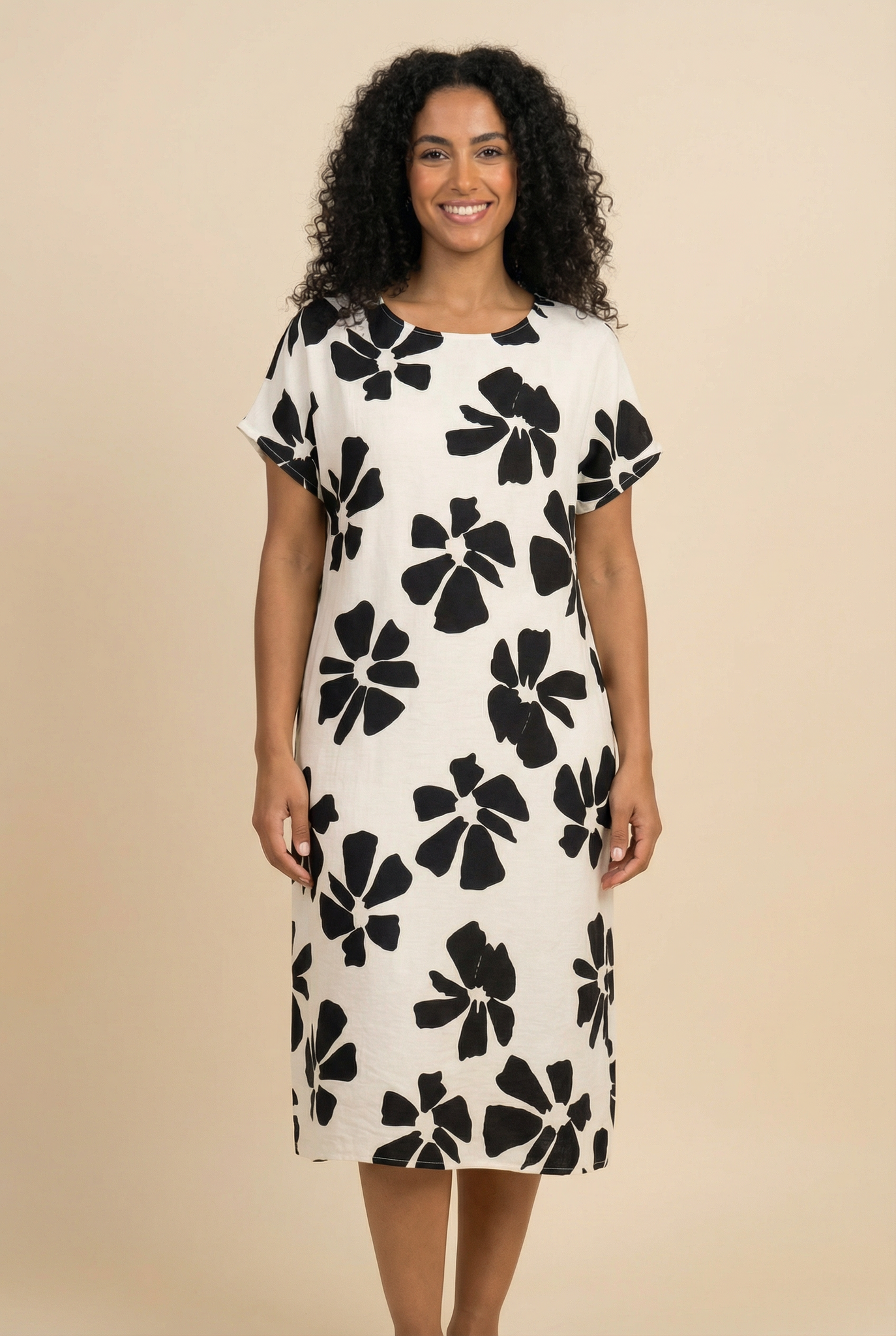 Bold Floral-Print Loose-Fit Midi Dress (2 Color Options)
