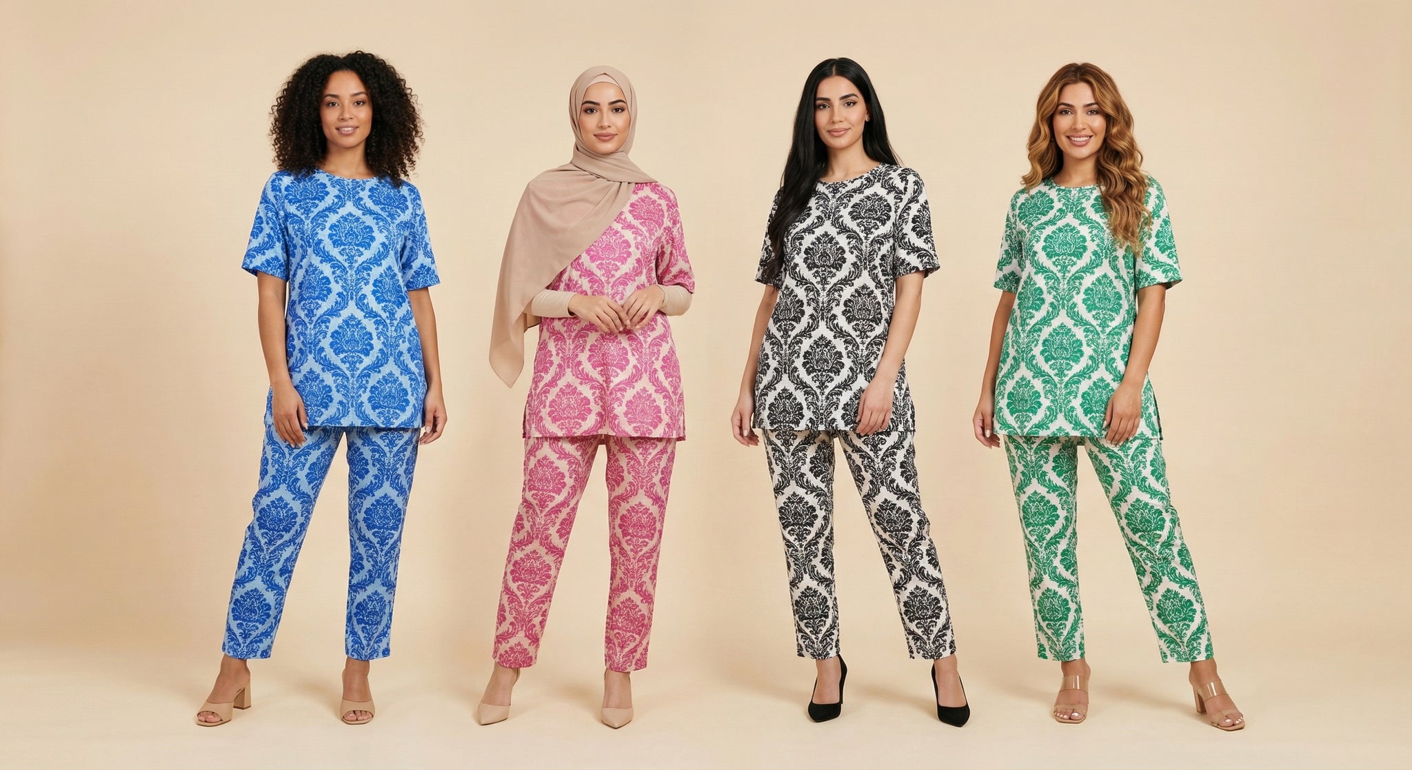 Damask-Pattern Modest Co-Ord Set (4 Color Options)