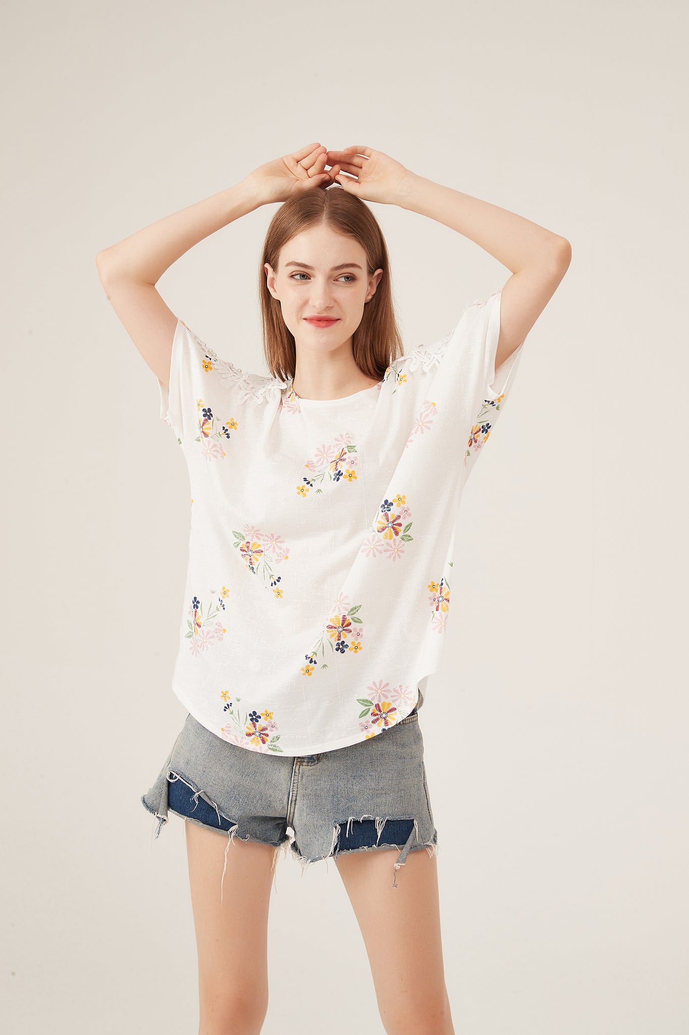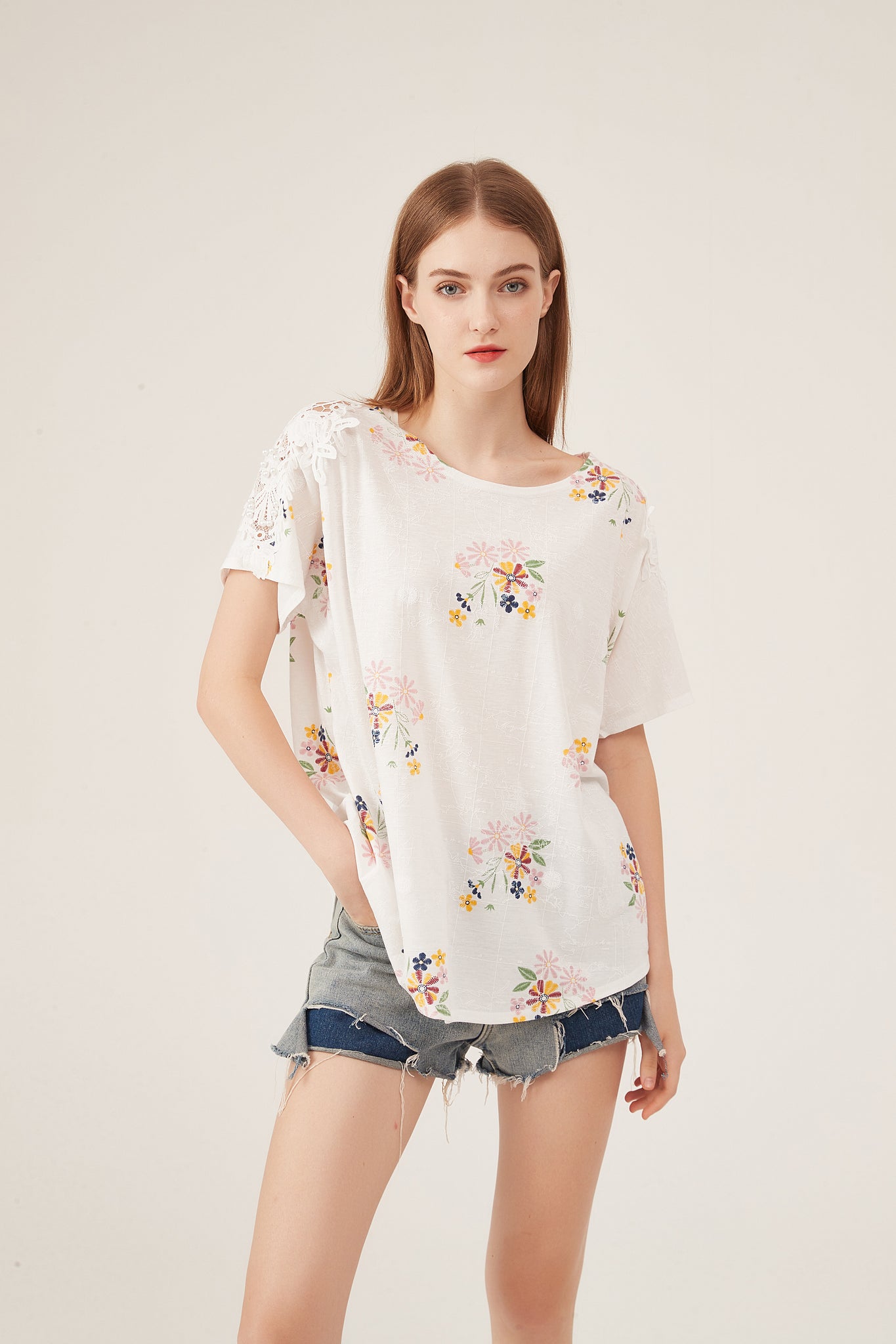 A dreamy blend of bohemian charm and delicate elegance, this loose white blouse is your new go-to for effortless, whimsical style. It features intricate lace cutouts at the shoulder—adding airy, romantic texture that elevates the relaxed silhouette—while scattered pastel floral embroidery (soft pink, sunny yellow, and subtle blue blooms) covers the fabric, infusing every wear with fresh, spring-inspired warmth. Crafted from a lightweight, breathable cotton-blend fabric, it delivers all-day comfort, and the oversized fit flatters all body types while pairing seamlessly with denim shorts, flowy skirts, or high-waisted trousers. Perfect for casual brunches, weekend outings, or laid-back office days, this piece balances playful boho flair with everyday versatility.