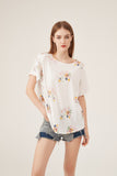 Boho Floral Embroidery Lace-Shoulder Loose White Blouse